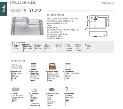 franke orca sink accessories